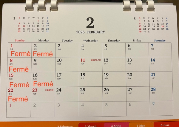 2月は基本の定休日