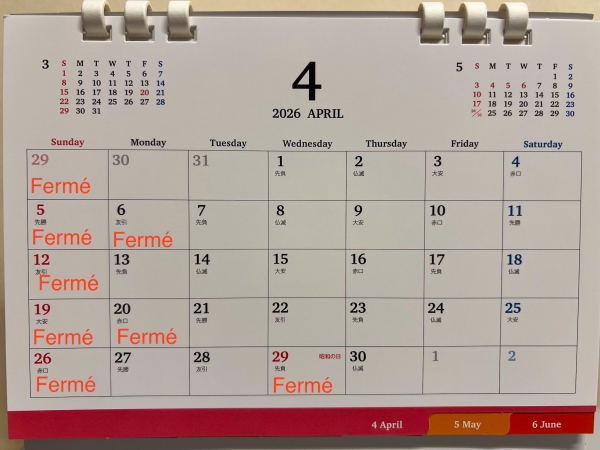 吹上のワインバー「LE MARTIN PECHEUR」のブログ 今月のカレンダー